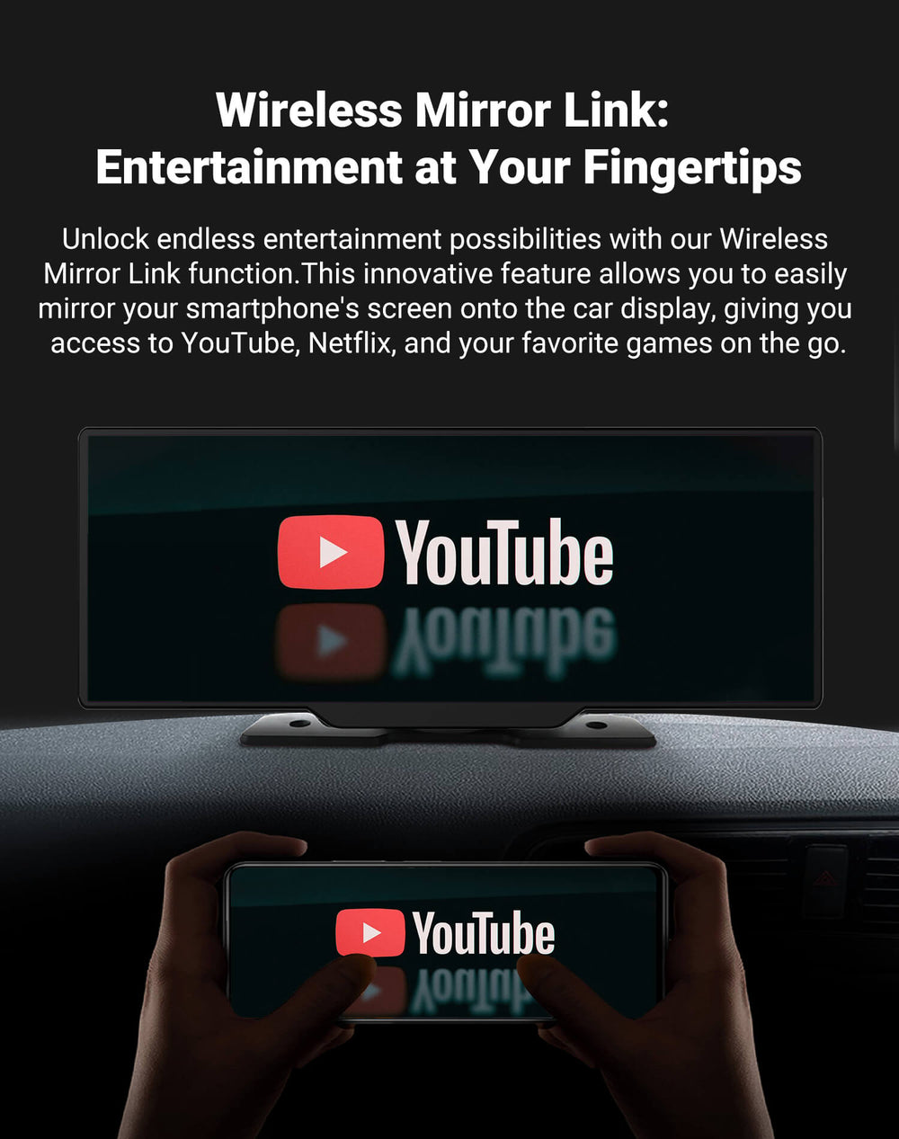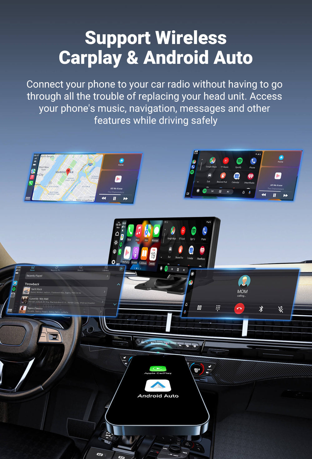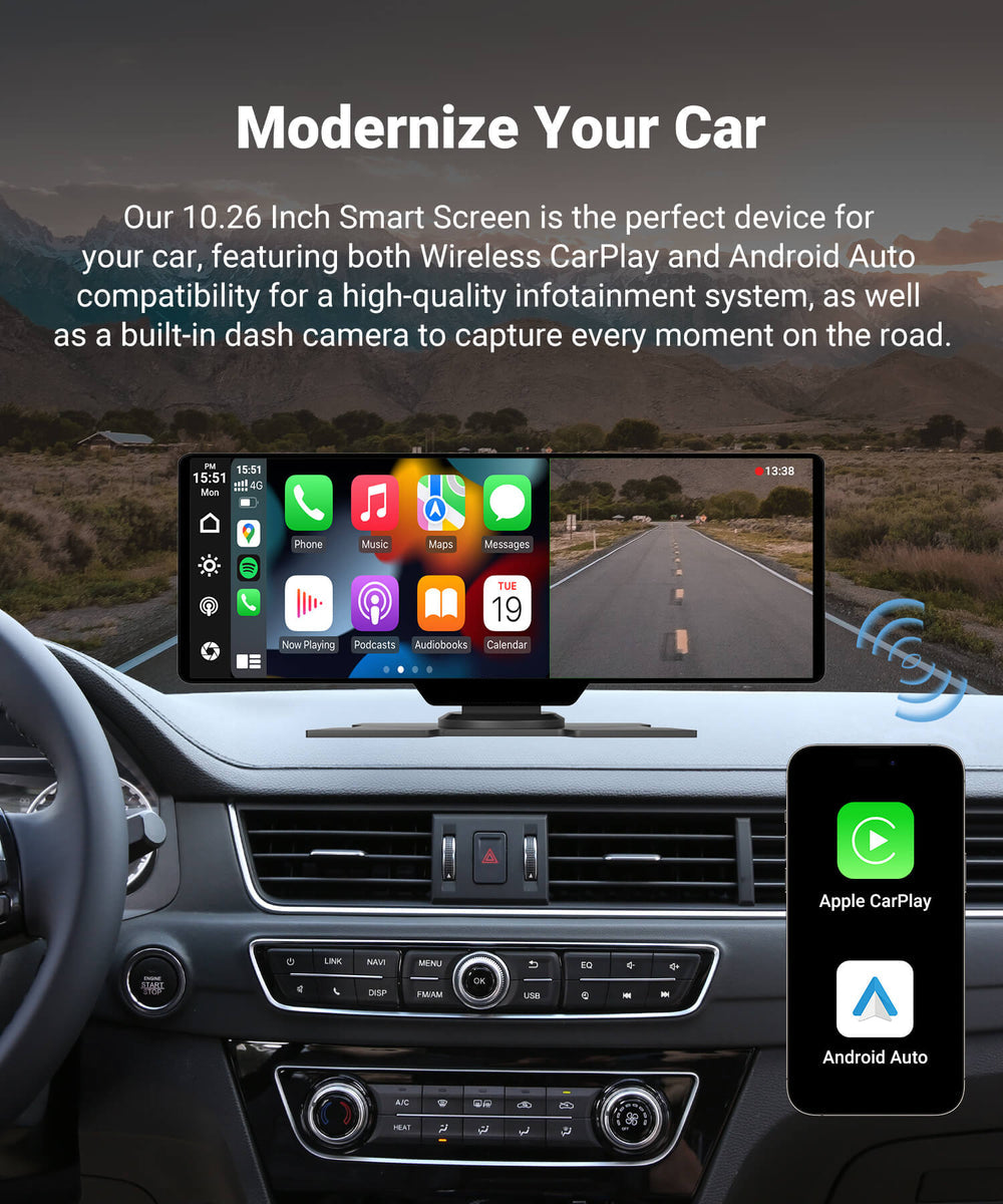 ✔ Wireless apple CarPlay & Android Auto & voice control